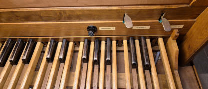 1er clavierBourdon 8Flûte 4Doublette 2Sesquialtera dessus2ème clavierFlûte 8Flûte 4Larigot 1 1/3 Cromorne 8 basse/dessusTremblantPédaleSoubasse 16Tirasse I - Tirasse II
